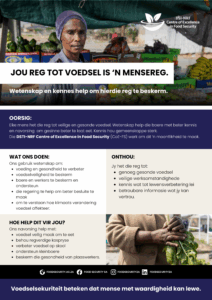 Elke mens het die reg tot veilige en gesonde voedsel. Wetenskap help die boere met beter kennis en navorsing om gesinne beter te laat eet. Kennis hou gemeenskappe sterk. Die DSTI-NRF Centre of Excellence in Food Security (CoE-FS) werk om dit ‘n moontlikheid te maak.